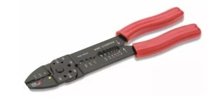 Szczypce do zagniatania Oszczędność do izolowanych i nieizolowanych końcówek kablowych, z przecinakami do przewodów i śrub do M5, oraz przyrządem do zdejmowania izolacji 0,5-6 mm³, prasowanie plecionki i izolacji kabla odbywa się w 2 operacjach, prasowanie owalne 0,5-6 mm³ , długość 220mm