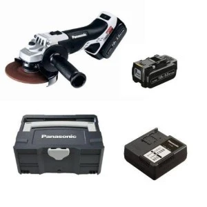 Akumulatorowa szlifierka kątowa Panasonic z tarczą 125 mm. Maksymalne obr. (z baterią 18,0V): 10 000 / min. Bardzo lekka (2,35kg) i poręczna. Technologia Tough tools IP gwarantuje wieloletnią żywotność odporność na kurz, brud, opiłki i wilgoć. Dual Voltage 18/14,4V pozwala na zasilanie z każdego rodzaju akumulatora Panasonic i budowanie floty narzędzi niezależnie od napięcia.