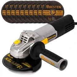 Szlifierka kątowa BESTEN BE0002850 ma silnik 1300W, dzięki czemu sprawdza się w typowych pracach warsztatowych i remontowych: cięciu, szlifowaniu i czyszczeniu elementów metalowych.