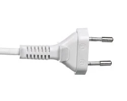 Przewód H03VVH2-F 2 x 0,5 mm2, o długości 190 cm,płaska wtyczka i łącznik przelotowy 2,5 A / 250 V AC z tworzywa sztucznego. Kolor biały.