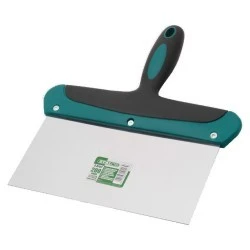 Szeroka szpachla malarska to bardzo funkcjonalne narzędzie budowlane. Produkt jest przydatny w czasie malowania i wykańczania powierzchni. Można wykorzystać go do nakładania farby, a także uzyskiwania odpowiedniej struktury. Sprawdzi się również w czasie przygotowywania podłoża, zbierania nadmiaru farby i innych pracach. Szpachla malarska STALCO ma szeroką część roboczą wykonaną ze stali nierdzewnej. Ten materiał nie wchodzi w reakcję ze środkami chemicznymi stosowanym w farbach i rozpuszczalnikach. Z gładkiej powierzchni można łatwo usuwać wyschniętą farbę. Szpachla ma solidny ergonomiczny uchwyt z dwukomponentowego tworzywa sztucznego. Zapewnia to komfort pracy i daje możliwość wygodnego użytkowania. Szpachla dostępna jest w szerokościach 200 i 240 mm.