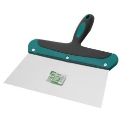 Szeroka szpachla malarska to bardzo funkcjonalne narzędzie budowlane. Produkt jest przydatny w czasie malowania i wykańczania powierzchni. Można wykorzystać go do nakładania farby, a także uzyskiwania odpowiedniej struktury. Sprawdzi się również w czasie przygotowywania podłoża, zbierania nadmiaru farby i innych pracach. Szpachla malarska STALCO ma szeroką część roboczą wykonaną ze stali nierdzewnej. Ten materiał nie wchodzi w reakcję ze środkami chemicznymi stosowanym w farbach i rozpuszczalnikach. Z gładkiej powierzchni można łatwo usuwać wyschniętą farbę. Szpachla ma solidny ergonomiczny uchwyt z dwukomponentowego tworzywa sztucznego. Zapewnia to komfort pracy i daje możliwość wygodnego użytkowania. Szpachla dostępna jest w szerokościach 200 i 240 mm.
