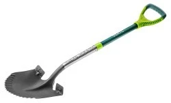 Szpadel ostry VERTO (nr ref. 15G003) o długości całkowitej 1150 mm. Przeznaczony głównie do prac ogrodowych i budowlanych. Głowica wykonana z wysokiej jakości stali hartowanej, ostro zakończona, ze specjalną ząbkowaną krawędzią ułatwiającą kopanie w ukorzenionym lub kamimenistym gruncie. Specjalny radełkowany trzonek wykonany z włókna szklanego zwiększa pewność uchytu. Dwumateriałowa rękojeść z tworzywa sztucznego, stabilnie leży w dłoni, co podnosi komfort pracy narzędziem. Matalowe wzmocnienie w miejscu najbardziej narażonym na uszkodzenia (łączenie trzonka z głowicą). Szerokie, profilowane podparcia dla stóp podnoszą komfort pracy.