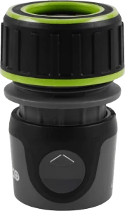 - STOP - szybkozłącze z funkcją STOP zastosowane na końcu węża pozwala na zmianę urządzeń zraszających - dysze, pistolety, zraszacze - bez konieczności zakręcania źródła wody.