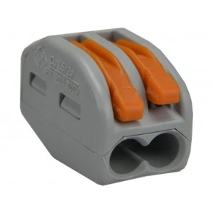 Szybkozłączka instalacyjna WAGO uniwersalna serii 222 wyposażona w zacisk CAGE CLAMP przeznaczona do łączenia przewodów jednodrutowych (tzw. drut) oraz wielodrutowych (tzw. linka).