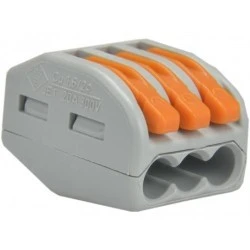 Szybkozłączka instalacyjna WAGO uniwersalna serii 222 wyposażona w zacisk CAGE CLAMP przeznaczona do łączenia przewodów jednodrutowych (tzw. drut) oraz wielodrutowych (tzw. linka).