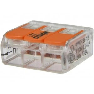 Szybkozłączka instalacyjna WAGO uniwersalna serii 221 COMPACT wyposażona w zacisk CAGE CLAMP przeznaczona do łączenia przewodów jednodrutowych (tzw. drut) oraz wielodrutowych (tzw. linka).