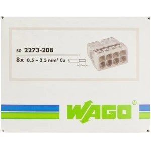 Szybkozłączka instalacyjna WAGO serii 2273 wyposażona w zacisk PUSH WIRE przeznaczona do łączenia przewodów jednodrutowych (tzw. drut).
