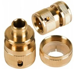 Szybkozłączka mosiężna zapewnia szybkie i wygodne podłączenie początku węża ogrodowego do kranu.