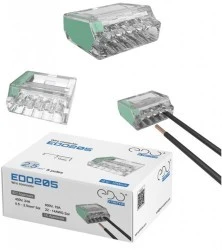 Złączki instalacyjne linii EDO , to łatwe w użyciu i bezpieczne rozwiązania do łączenia przewodów w instalacjach elektrycznych. Stosowane m. in. w rozdzielniach elektrycznych, skrzynkach przyłączeniowych, puszkach instalacyjnych, instalacjach przemysłowych i systemach oświetleniowych.