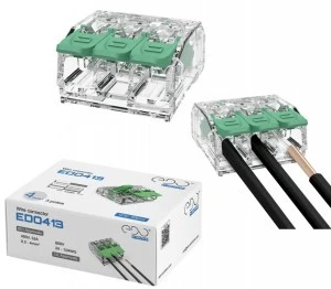 Złączki instalacyjne linii EDO , to łatwe w użyciu i bezpieczne rozwiązania do łączenia przewodów w instalacjach elektrycznych. Stosowane m. in. w rozdzielniach elektrycznych, skrzynkach przyłączeniowych, puszkach instalacyjnych, instalacjach przemysłowych i systemach oświetleniowych.
