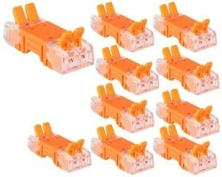 ▶Złączka wybierana jest głównie ze względu na prostotę użytkowania. Szybkozłączki elektryczne nie wymagają śrub czy narzędzi. Wystarczy włożyć przewody do otworu i zabezpieczyć je przy pomocy dźwigni blokujących.