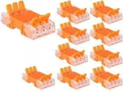 ▶Złączka wybierana jest głównie ze względu na prostotę użytkowania. Szybkozłączki elektryczne nie wymagają śrub czy narzędzi. Wystarczy włożyć przewody do otworu i zabezpieczyć je przy pomocy dźwigni blokujących.