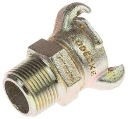 Złącze zaciskowe typu Q, męskie NPT. Złącza typu Q NPT męskie Claw posiadają zabezpieczenie typu "blokada styków", które zapobiega przypadkowemu odłączeniu i są odpowiednie do zastosowań sprężonego powietrza o średnim lub wysokim ciśnieniu. Łączniki gwintowane typu Q są w pełni zamienne ze standardowymi zaczepami europejskimi i wykonane z żeliwa ciągliwego, wykończone cynkiem.