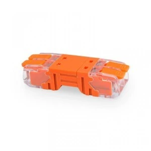 Elektryczne złącze wciskane CMK-642, połączenie sztywnych, wielożyłowych zworek dla przewodów od 0,2 do 4 mm². Smukła konstrukcja minimalizuje wymiary do montażu w ciasnych przestrzeniach. Podłączanie i rozłączanie bez użycia narzędzi dzięki praktycznej technologii dźwigniowej.