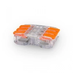 Elektryczne złącze wciskane CMK-653, połączenie sztywnych, wielożyłowych zworek dla przewodów od 0,2 do 4 mm². Smukła konstrukcja minimalizuje wymiary do montażu w ciasnych przestrzeniach. Podłączanie i rozłączanie bez użycia narzędzi dzięki praktycznej technologii dźwigniowej