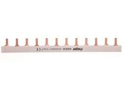 Szyna łączeniowa 2P 63A 10mm2 sztyftowa (12mod.) KB263A. Produkt solidny, dobrze wykonany obudowa wytrzymała nie pęka od byle uderzenia jak u chińskich odpowiedników. Wydaje mi się, że w tym przedziale cenowym i z tymi parametrami nic lepszego się nie kupi.