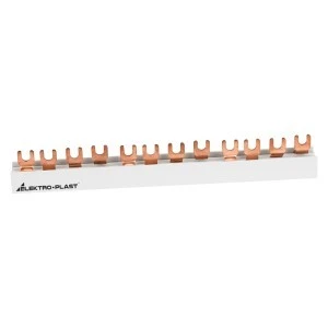 Izolowane szyny zbiorcze zapewniają bezpieczne i trwałe połączenie aparatury modułowej niskiego napięcia w rozdzielniach elektrycznych. Wykonanie profilu z PVC (izolacyjnego) a wykrojów z miedzi elektrotechnicznej Cu-ETP. Stabilność pracy od -20 do +70 stopni Celsjusza. Materiały użyte do produkcji spełniają bardzo rygorystyczne parametry określone przez certyfikaty. Nowe pozycje to S12 4F – 10 (nr kat. 45.412) i S56 4F – 10 (nr kat. 45.456) z obciążalnością prądową 63A dla przekrojów 10mm2. Obciążalność prądową na poziomie 100A posiadają kolejne dwie szyny dla przekrojów 16mm2, S12 4F – 16 (nr kat. 45.426) i S56 F4 – 16 (nr kat. 45.466)