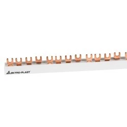 Izolowane szyny zbiorcze zapewniają bezpieczne i trwałe połączenie aparatury modułowej niskiego napięcia w rozdzielniach elektrycznych. Wykonanie profilu z PVC (izolacyjnego) a wykrojów z miedzi elektrotechnicznej Cu-ETP. Stabilność pracy od -20 do +70 stopni Celsjusza. Materiały użyte do produkcji spełniają bardzo rygorystyczne parametry określone przez certyfikaty. Nowe pozycje to S12 4F – 10 (nr kat. 45.412) i S56 4F – 10 (nr kat. 45.456) z obciążalnością prądową 63A dla przekrojów 10mm2. Obciążalność prądową na poziomie 100A posiadają kolejne dwie szyny dla przekrojów 16mm2, S12 4F – 16 (nr kat. 45.426) i S56 F4 – 16 (nr kat. 45.466)