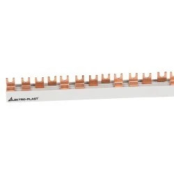 Izolowane szyny zbiorcze zapewniają bezpieczne i trwałe połączenie aparatury modułowej niskiego napięcia w rozdzielniach elektrycznych. Wykonanie profilu z PVC (izolacyjnego) a wykrojów z miedzi elektrotechnicznej Cu-ETP. Stabilność pracy od -20 do +70 stopni Celsjusza. Materiały użyte do produkcji spełniają bardzo rygorystyczne parametry określone przez certyfikaty. Nowe pozycje to S12 4F – 10 (nr kat. 45.412) i S56 4F – 10 (nr kat. 45.456) z obciążalnością prądową 63A dla przekrojów 10mm2. Obciążalność prądową na poziomie 100A posiadają kolejne dwie szyny dla przekrojów 16mm2, S12 4F – 16 (nr kat. 45.426) i S56 F4 – 16 (nr kat. 45.466)