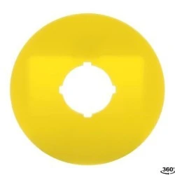Tabliczka opisowa o średnicy 70 mm do zatrzymania awaryjnego. tekst na żółtym plastiku bez tekstu
