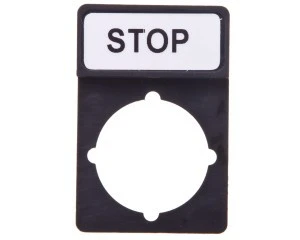 Tabliczka opisowa STOP 44x30mm czarna prostokątna ST22‑1901\P03