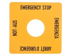 Tabliczka opisowa żółta 50x50mm EMERGENCY STOP SQT1 058874
