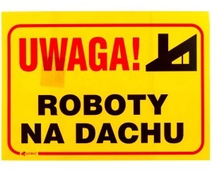 Tabliczka ostrzegawcza PCV /Uwaga! Roboty na dachu 350x250/ B3/L/P