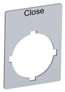 Tabliczka opisowa z oznaczeniem "Close" do aparatury przemysłowej ABB. Przeznaczona do montażu na przyciskach, lampkach sygnalizacyjnych i przełącznikach. Wykonana z trwałego materiału odpornego na ścieranie. Ułatwia identyfikację funkcji elementów sterujących.
