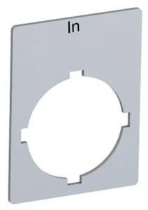 Tabliczka opisowa z oznaczeniem "In" do aparatury przemysłowej ABB. Przeznaczona do montażu na przyciskach, lampkach sygnalizacyjnych i przełącznikach. Wykonana z trwałego materiału odpornego na ścieranie. Ułatwia identyfikację funkcji elementów sterujących.