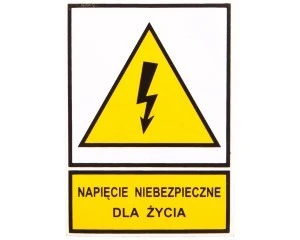 Tabliczka /znak ostrzegawczy/ TZO 105X148S /POD NAPIĘCIEM/ E04TZ-01011130800 /10szt./