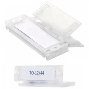 Tabliczki opisowe, wykonane z polietylenu - wysoko przezroczystego tworzywa ułatwiającego opisywanie wiązek przewodów, kabli, rurek, a także wszelkich innych elementów do których można przytwierdzić tabliczkę za pomocą opaski zaciskowej, nitu, śruby lub wkrętu.