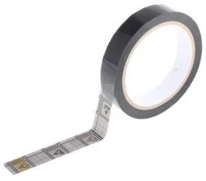 Obsługa zgodności programów sterowania ESD S20.20 i EN 61340-5-1. Taśma samoprzylepna z symbolem ESD. Taśma samoprzylepna z symbol Przewodząca powierzchnia polipropylenu Do ręcznych i automatycznych dozowników taśm Niski poziom naładowania