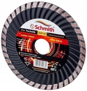 Tarcza Super Turbo marki Schmith to wysokiej jakości tarcza do cięcia. Wzmocniona konstrukcja rdzenia umożliwia bardzo stabilną pracę. Unikalny system nawlekania cząstek diamentu na powierzchnię roboczą tarczy zapewnia dłuższą jej trwałość.