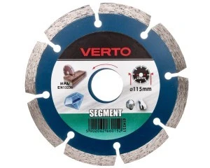 Tarcza diamentowa segmentowa, to produkt renomowanej marki VERTO, należącej do Grupy TOPEX. Firma jest dostawcą wysokiej klasy narzędzi i akcesoriów dla klientów instytucjonalnych i indywidualnych. Swoje produkty posiadają wymagane certyfikaty, świadczące o ich jakości i bezpieczeństwie. Prezentowany model tarczy przeznaczony jest do cięcia cegły, betonu, dachówki, ceramiki i kamieni naturalnych.