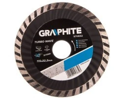 Profesjonalna tarcza diamentowa 115 22.2 mm turbo wave to narzędzie marki GRAPHITE, firmy TOPEX - producenta i dystrybutora wysokiej jakości narzędzi i osprzętu dla przemysłu oraz klientów indywidualnych. Prezentowana tarcza przeznaczona jest przede wszystkim do wykonywania ciężkich prac budowlanych.