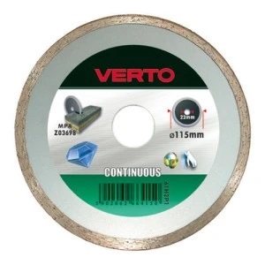 Tarcza diamentowa pełna VERTO (nr ref. 61H2P8) o średnicy zewnętrznej 180 mm, przeznaczona do precyzyjnego cięcia elementów ceramicznych, takich jak terakota, gres, granit, marmur. Marka VERTO oferuje asortyment elektronarzędzi i akcesoriów dla każdego majsterkowicza.