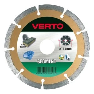 Tarcza diamentowa segmentowa VERTO (nr ref. 61H3S8) o średnicy zewnętrznej 180 mm pozwala wydajnie ciąć elementy wykonane z betonu, betonu zbrojonego, granitu, marmuru, kamienia, cegły itp. Marka VERTO oferuje asortyment elektronarzędzi i akcesoriów dla każdego majsterkowicza.