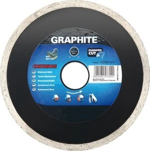 Tarcza diamentowa pełna GRAPHITE (nr ref. 57H646) o średnicy zewnętrznej 230 mm, dzięki prasowanemu na gorąco ciągłemu segmentowi idealnie nadaje się do ciężkich prac budowlanych. Wysoko wytrzymały segment diamentowy pozwala wydajnie ciąć elementy ceramiczne, takie jak terakota, gres, granit, marmur.