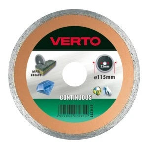 Tarcza diamentowa pełna VERTO (nr ref. 61H3T9) o średnicy zewnętrznej 230 mm, przeznaczona do precyzyjnego cięcia elementów ceramicznych, takich jak terakota, gres, granit, marmur. Marka VERTO oferuje asortyment elektronarzędzi i akcesoriów dla każdego majsterkowicza.