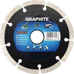 Tarcza diamentowa segmentowa GRAPHITE (nr ref. 57H619) o średnicy zewnętrznej 230 mm, dzięki prasowanym na gorąco segmentom idealnie nadaje się do ciężkich prac budowlanych. Wysoko wytrzymałe segmenty diamentowe pozwalają wydajnie ciąć elementy wykonane z betonu, betonu zbrojonego, granitu, marmuru, kamienia, cegły itp.