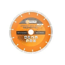 Tarcze diamentowe Polax „Segmentowane” przeznaczone są do cięcia na sucho materiałów budowlanych – betonu, cegły, kamienia i marmuru. Stosowany w szlifierce kątowej, ręcznej elektrycznej przecinarce do płytek, bruzdownicy ściennej. Składa się z segmentów diamentowych i stalowego korpusu. Posiada otwór montażowy z pierścieniem adapterowym o średnicy 22,2 mm. Posiada unikalną funkcję samoostrzenia zapewniającą wysoką wydajność cięcia, w której metalowa podstawa krawędzi tnącej pomaga usunąć zużyte elementy diamentowe i uwolnić nowe elementy diamentowe.