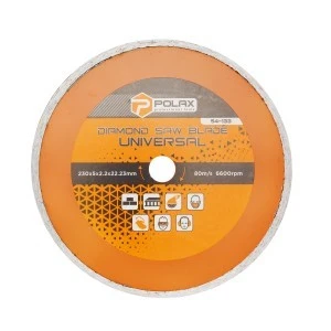 Tarcze diamentowe Polax Universal służą do cięcia wszelkiego rodzaju płytek i glazury. Posiada ciągłą krawędź, która zapobiega odpryskom i pęknięciom oraz pozwala na ultraprecyzyjne, delikatne cięcia. Średnica otworu montażowego wynosi 22,23 mm, wysokość warstwy diamentu 5 mm. Posiada unikalną funkcję samoostrzenia zapewniającą wysoką wydajność cięcia, w której metalowa podstawa krawędzi tnącej pomaga usunąć zużyte elementy diamentowe i uwolnić nowe elementy diamentowe. Tarcze Polax to wysokiej jakości tarcze, które znajdują szerokie zastosowanie zarówno przy naprawach domowych, jak i podczas wielkogabarytowych prac budowlanych. Do dysku dołączony jest pierścień adaptera.