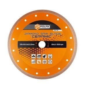 Tarcze diamentowe Polax Ceramic dzięki zmniejszonej grubości (najcieńsze tarcze diamentowe w ofercie Polax) pozwalają ciąć szybciej i dokładniej, unikając odprysków i przy mniejszym obciążeniu szlifierki. Zapewniają precyzyjne i cienkie cięcia, a także szlifowanie krawędzi płytek. Tarcze przeznaczone są do cięcia na sucho i nie wymagają wymuszonego chłodzenia. Zoptymalizowany do cięcia gresu porcelanowego. Nadaje się również do cięcia płytek ceramicznych, płytek porcelanowych, marmuru, cegły, betonu, płytek, płyt chodnikowych i innych twardych materiałów. Wysoka koncentracja drobnych diamentów na krawędzi tnącej w kształcie litery X, a także minimalna możliwa grubość ściernicy, zapewnia minimalne tarcie w ciętym materiale, dużą prędkość cięcia i zwiększoną czystość krawędzi.