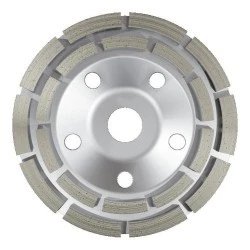 Dwurzędowa tarcza diamentowa szlifierska to element odpowiedzialny za szlifowanie kamieni i betonu. Narzędzie pasuje do uchwytów w większości szlifierek kątowych i innych elektronarzędzi. Z jej pomocą można wygładzić nierówności na powierzchni betonu, zebrać jego nadmiar lub przeprowadzić podobne prace. Tarcza diamentowa szlifierska ma dwa rzędy powierzchni roboczych pokrytych diamentem. Otwory w kopułowej budowie pozwalają na skuteczne odprowadzanie pyłu, a także zapobiegają przegrzaniu się akcesorium. W zależności od potrzeb i wielkości maszyny można wybrać tarczę o różnych średnicach.