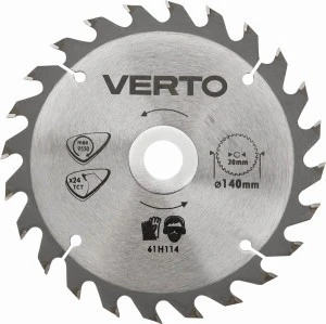 Tarcza do pilarki widiowa VERTO (nr ref. 61H114) o średnicy zewnętrznej 140 mm, o zredukowanej grubości dysku, pozwala uzyskiwać wyższą prędkość cięcia. Zęby z nakładkami z węglika spiekanego YG8A pozwalają na zgrubne cięcie drewna i materiałów drewnopochodnych, takich jak sklejka, płyta wiórowa, MDF. Zawarte w opakowaniu pierścienie redukcyjne umożliwiają zastosowanie tarczy do większości modeli pilarek. Marka VERTO oferuje asortyment elektronarzędzi i akcesoriów dla każdego majsterkowicza.