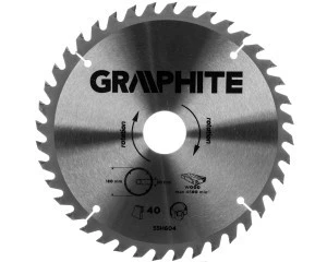 Tarcza do pilarki widiowa GRAPHITE (nr ref. 55H604) o średnicy zewnętrznej 180 mm, wykonana ze stopu stali manganowej MN65 o dużej odporności na temperaturę i odkształcenia. Zęby z nakładkami z węglika spiekanego YG6A pozwalają na zgrubne cięcie drewna i materiałów drewnopochodnych, takich jak sklejka, płyta wiórowa, MDF. Zawarte w opakowaniu pierścienie redukcyjne umożliwiają zastosowanie tarczy do większości modeli pilarek.