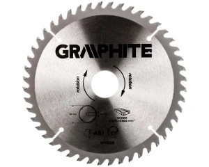 Tarcza do pilarki widiowa GRAPHITE (nr ref. 57H666) o średnicy zewnętrznej 185 mm, wykonana ze stopu stali manganowej MN65 o dużej odporności na temperaturę i odkształcenia. Zęby z nakładkami z węglika spiekanego YG6A pozwalają na precyzyjne cięcie drewna i materiałów drewnopochodnych, takich jak sklejka, płyta wiórowa, MDF. Zawarte w opakowaniu pierścienie redukcyjne umożliwiają zastosowanie tarczy do większości modeli pilarek.