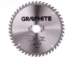 Tarcza do pilarki widiowa GRAPHITE (nr ref. 57H680) o średnicy zewnętrznej 216 mm wykonana ze stopu stali manganowej MN65 o dużej odporności na temperaturę i odkształcenia. Zęby z nakładkami z węglika spiekanego YG6A pozwalają na średnio dokładne cięcie drewna i materiałów drewnopochodnych takich jak sklejka płyta wiórowa MDF. Zawarte w opakowaniu pierścienie redukcyjne umożliwiają zastosowanie tarczy do większości modeli pilarek.