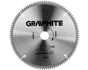 Tarcza do pilarki widiowa GRAPHITE (nr ref. 55H611) o średnicy zewnętrznej 250 mm, wykonana ze stopu stali manganowej MN65 o dużej odporności na temperaturę i odkształcenia. Zęby z nakładkami z węglika spiekanego YG6A pozwalają na zgrubne cięcie materiałów aluminiowych Zawarte w opakowaniu pierścienie redukcyjne umożliwiają zastosowanie tarczy do większości modeli pilarek.
